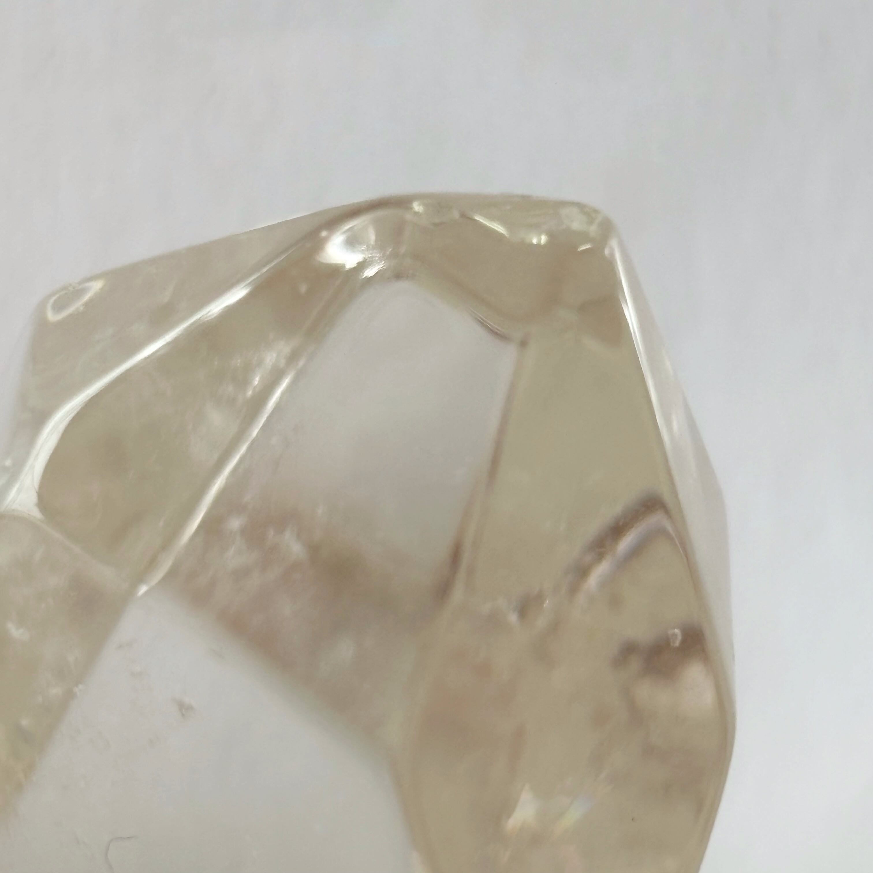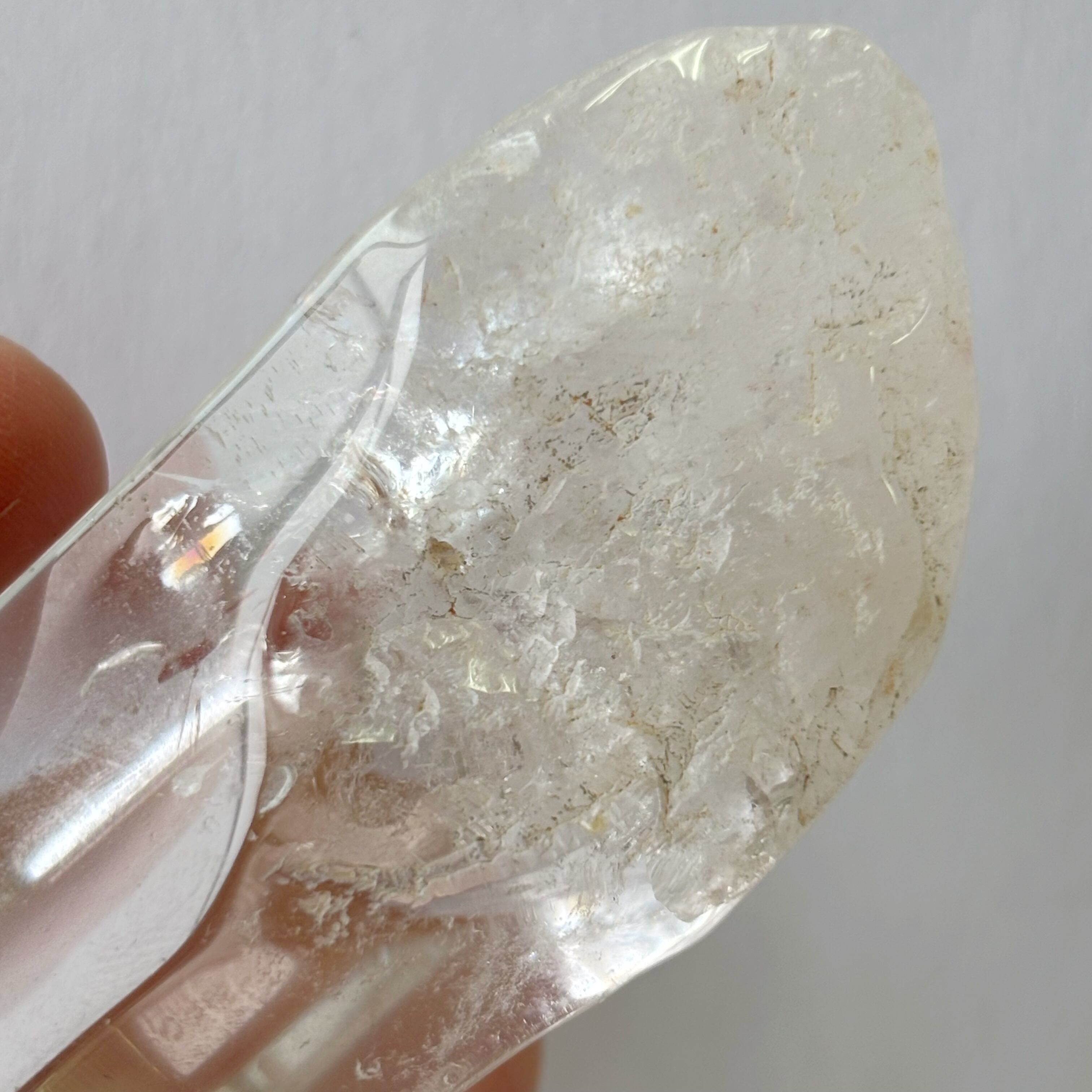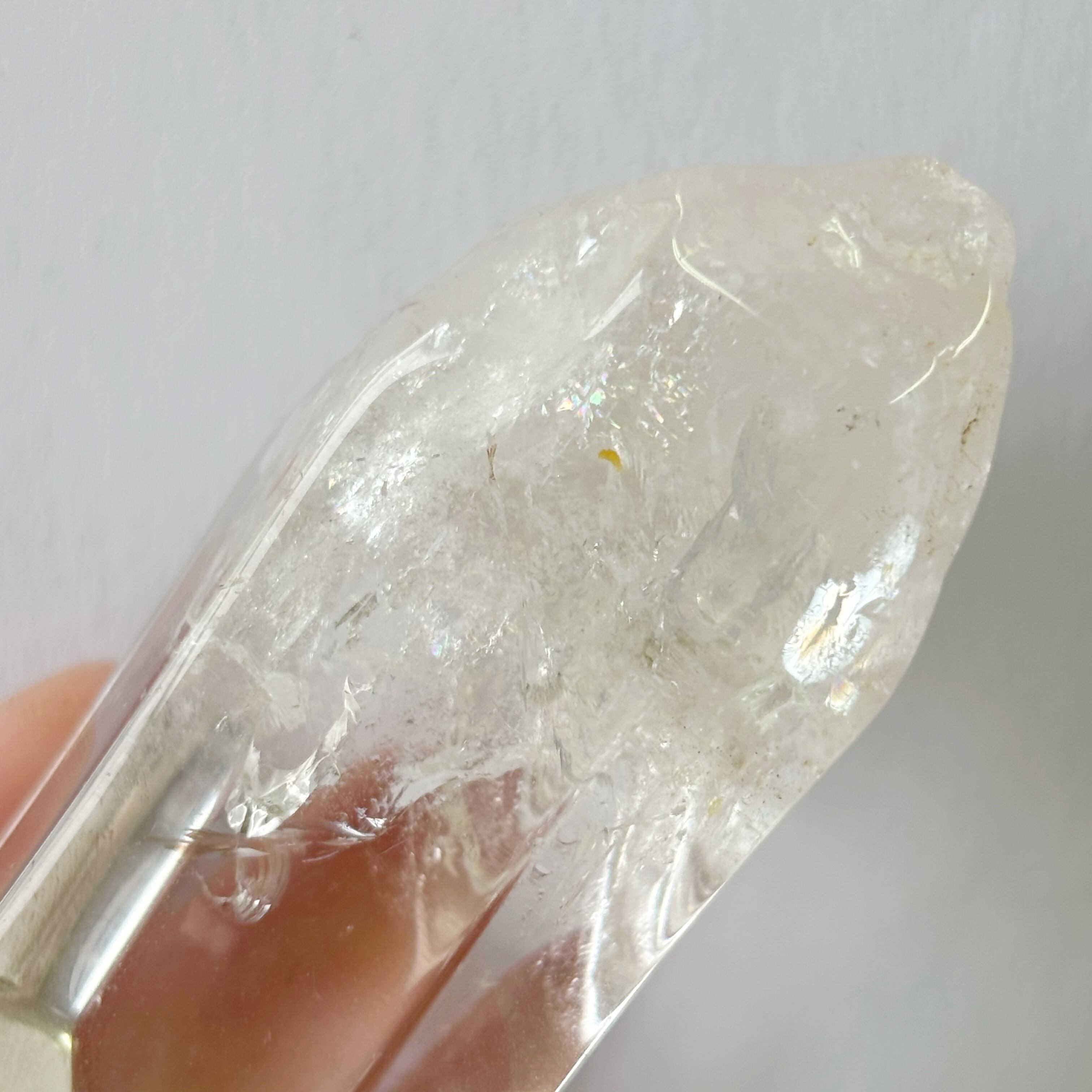 透明感あふれるこのクォーツは、光を受けてきらりと光る虹があり、見る者を虜にします。